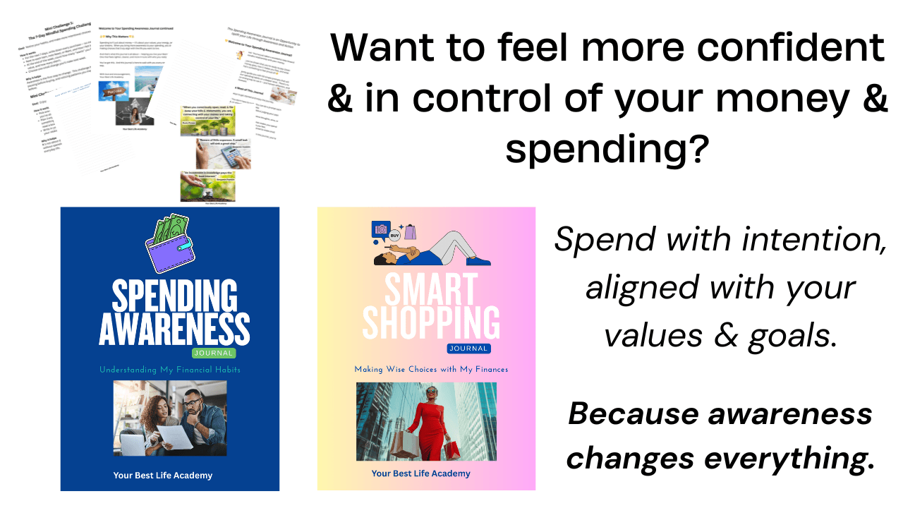 This bundle includes the Spending Awareness Journal and the Smart Shopper Journal, each with 50 thoughtful journal prompts, gentle challenges, and inspiring quotes. You’ll gain clarity around your spending habits, make more intentional choices, and align your money with what truly matters to you — your values, beliefs, and goals. A supportive, feel-good way to create a healthier relationship with money.